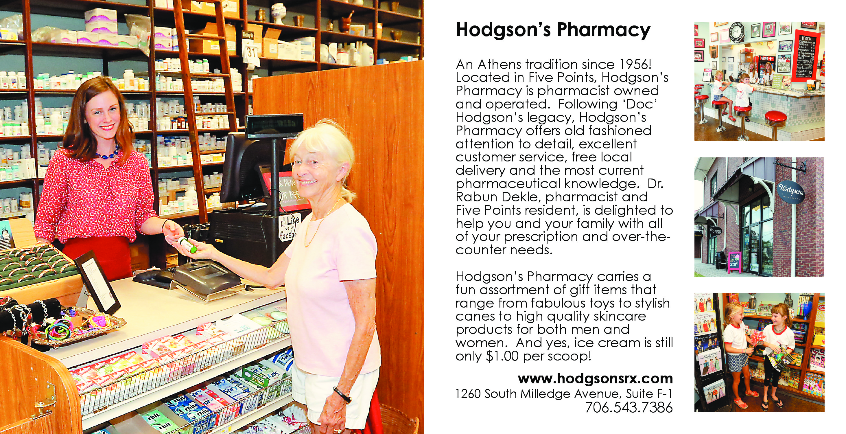 In 2011 the Hodgson's family sold Hodgson's Pharmacy. Now co-owned by Dr. Christopher Thurmond and Dr. Rabun Neves, Hodgson's Pharmacy continues its commitment to the Athens community as a pioneering pharmacy resource and a neighborhood center. Hodgson's Pharmacy wishes to remain An Athens Tradition for many more generations to come. The hometown feel, the tradition of fast friendly service, and the hand-dipped ice cream cone remain an integral part of the Hodgson's Pharmacy experience